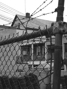The 15ft barbed wire fence I climbed and got hung up on in the rear of the house on Tremont Ave.